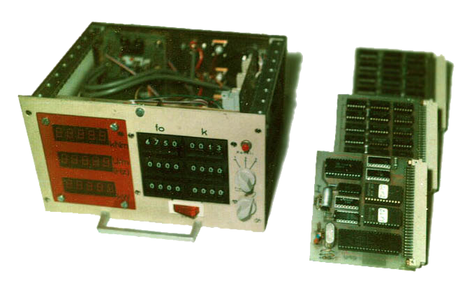 Hier ein frühes Werk, ein Mikroprozessor-gesteuertes Leistungsmessgerät, das bereits 1979 entwickelt wurde, um Drehmomentsignale von Schiffsantriebswellen auszuwerten, deren Drehzahl zu bestimmen, und mit einigen Umrechnungen und viertaktorienterten Mittelungen die momentan über die Schiffswelle übertragene Leistung zu errechnen und darzustellen. Später kam noch ein Streifendrucker hinzu, der das Protokollieren der Messwerte auf Spezialpapier erlaubte.